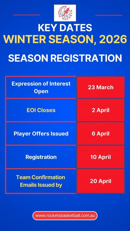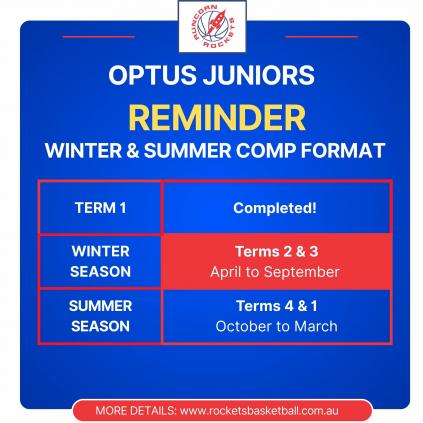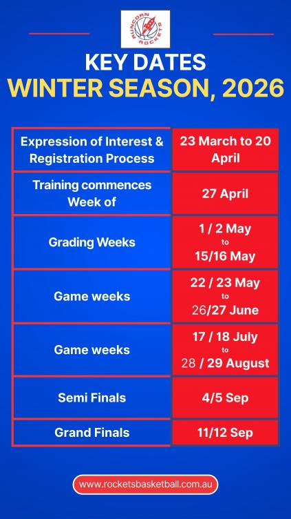 From March 2026, South West Metro Pirates moved the junior competition (Optus Juniors) to a Winter / Summer model. Runcorn Rockets has aligned all our junior teams with this structure. More detail on our website at our Programs & Updates Page.