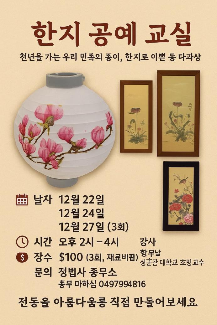 | 정법사 한지 공예 교실 안내 | 공지사항[일반] | 13/11/2025 | 371 |